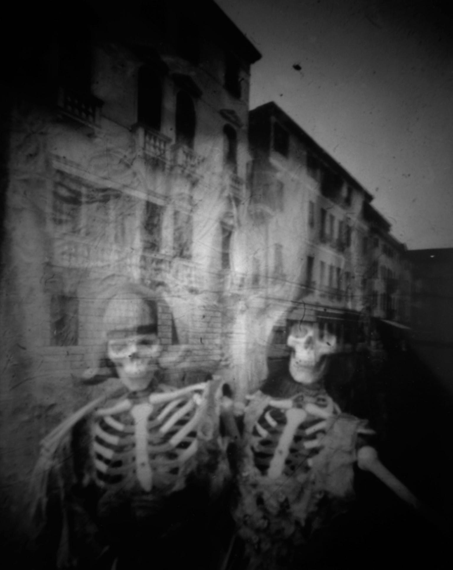 Günter Derleth fotografiert mit der Camera Obscura. Sie zeichnet nur das auf, was stillsteht. Jede Bewegung ist getilgt oder höchstens als schemenhafte Lichtspur zu erkennen. Aus diesem Schweigen der Gegenwart schälen sich die Silhouetten der Lagunenstadt heraus. Unwirklich, wie aus den Tiefen der Geschichte geborgen, zeichnet die Camera Obscura Bilder, die mit unserer heutigen Realität eigentlich nichts mehr zu tun haben.